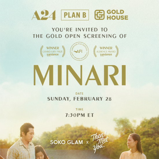 Then I Met You and Soko Glam partnered with Gold House, a nonprofit committed to unity and representation of Asians and Pacific Islanders in America, and A24 to host a virtual screening of Minari, a movie about the Korean-American immigrant experience.